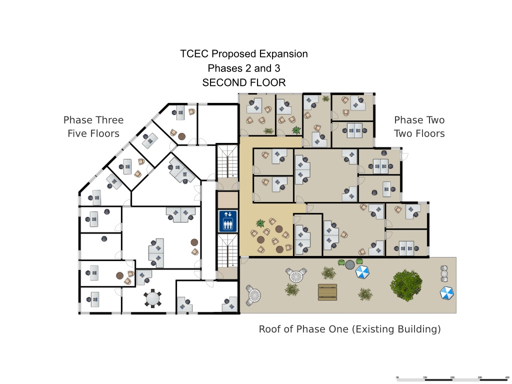 The most common office size at TCEC is approximately 10 feet by 15 feet (150sf), and can be leased furnished or unfurnished.